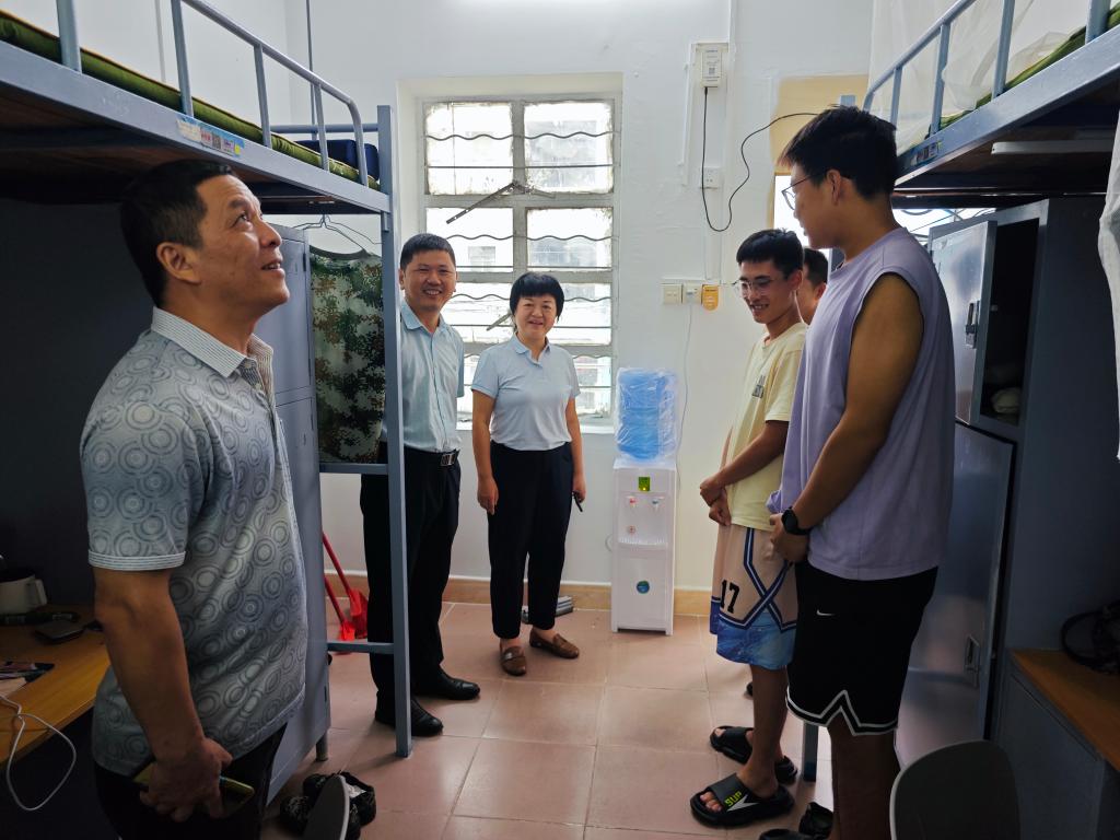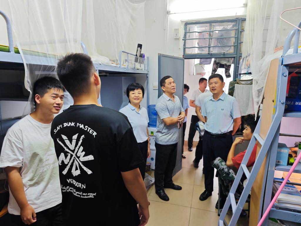 为全力迎战今年第18号台风“桦加沙”,确保在校学生生命财产安全,9月24日上午,色情网党委书记邓朝晖,正处级辅导员、党委副书记齐昊带领学工半军管全体人员深入学生宿舍,开展台风防御安全检查与宣传教育工作。