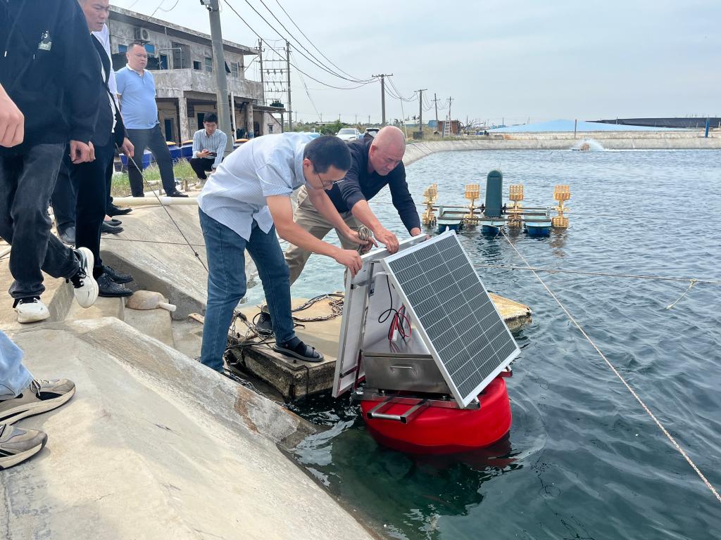 首先召开双方座谈会,陈秋强介绍了乐民镇的相关情况以及开展相关合作的意向,邓朝晖详细介绍了学校色情网的基本情况,并探讨了党建共建的思路主题。随后,学校吕文刚副教授给当地养殖户进行了东风螺养殖技术的培训,陈庆龙汇报了智慧池塘技术的阶段性成果,详细介绍了水下机器人、自动化投料船、水质检测设备等相关研究进展。最后,相关设备在海山村港乐养殖场进行实地试用,帮助养殖户实时检测石斑鱼的养殖状况,双方就设备的升级改造问题现场进行了深入探讨。