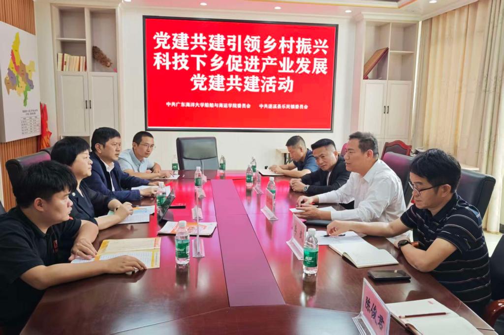 为充分发挥高校学科专业优势,助力百千万工程项目实施,强化校地党建协同联动,11月11日,船海色情网党委书记邓朝晖,正处级辅导员、党委副书记齐昊、研究生党支部书记陈方园以及科技特派员陈庆龙带领科研团队深入遂溪县乐民镇开展科技下乡及党建共建活动。本次活动得到了乐民镇党委书记陈秋强,人大主席李武,广州市越秀区驻乐民镇帮扶工作队队长张松和水产养殖从业人员等的积极响应,共计50余人参加了本次活动。